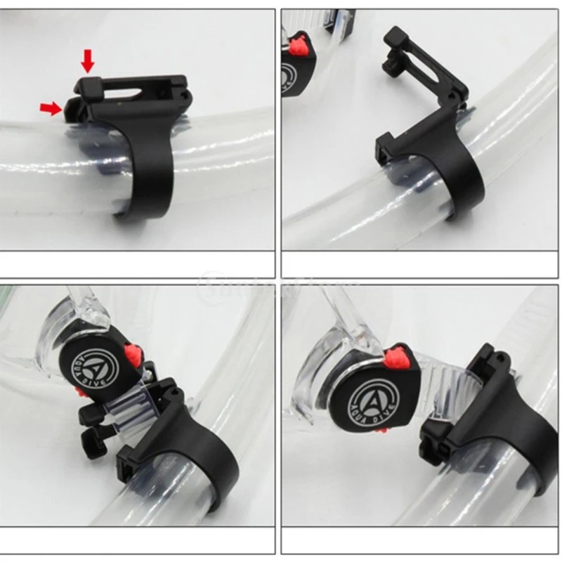 Clemă practică care permite o conexiune fermă între șnorkel și masca de scufundare. Asigură stabilitate, instalare ușoară și utilizare confortabilă în apă. Descrierea completă