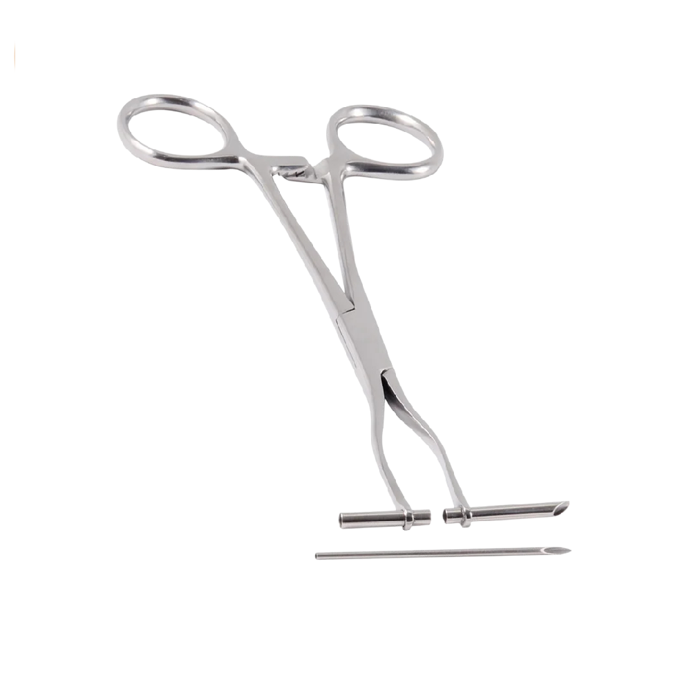 Cleștele metalic solid permite trecerea controlată și sigură a acului de piercing datorită tijei de recepție de cealaltă parte a țesutului. Descrierea completă