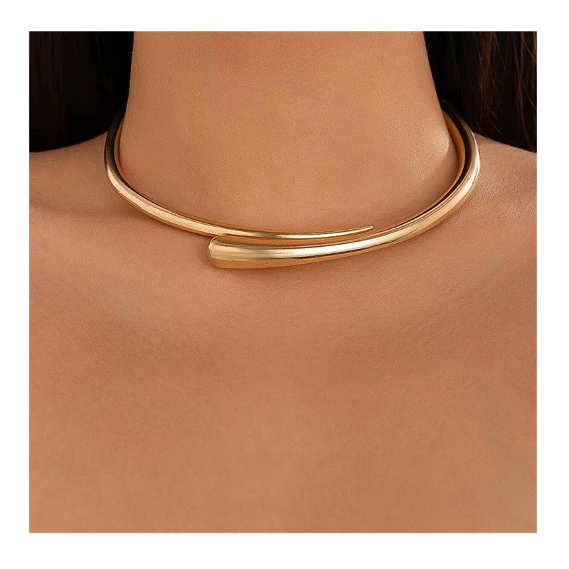 Colier modern reglabil din aliaj în stil minimalist. Ideal pentru nuntă, petrecere sau ca un cadou elegant. Descrierea completă
