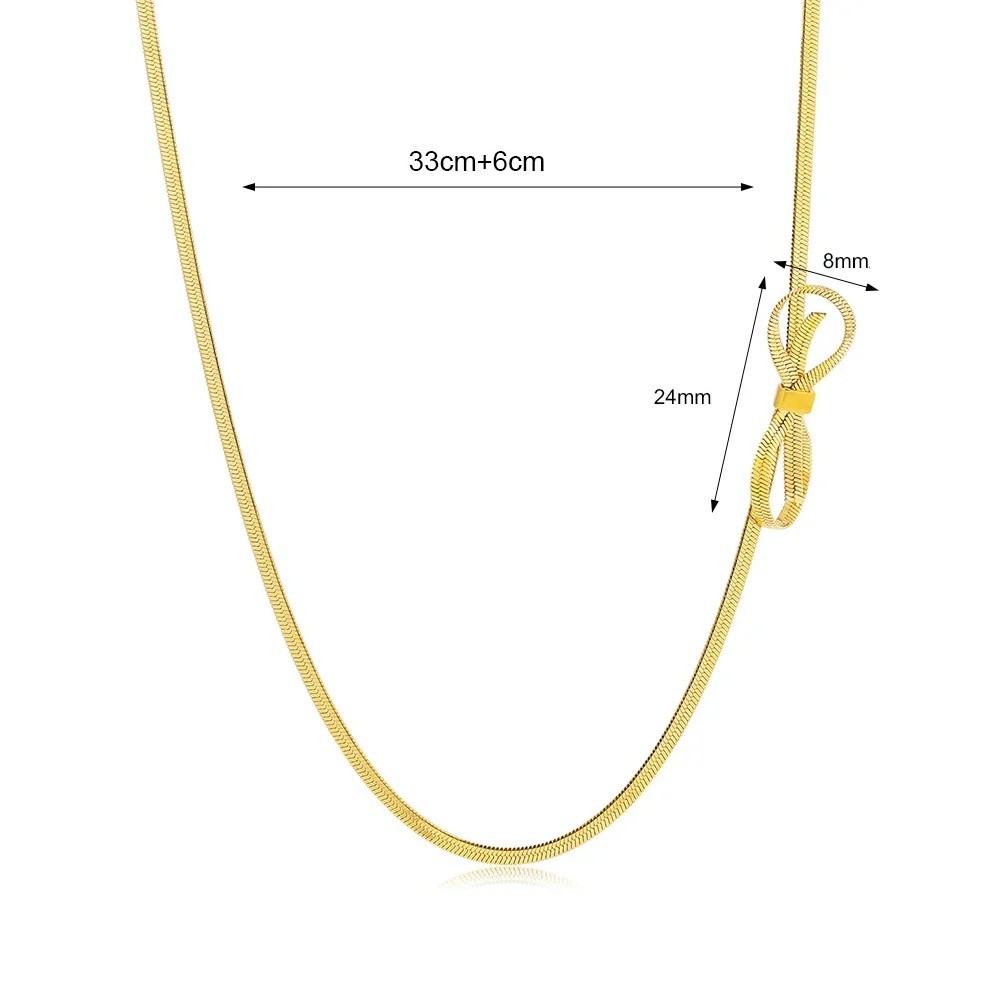 Colier elegant pentru femei cu o mică fundiță și design minimalist, lungime 33 cm cu lungime ajustabilă 6 cm, ideal pentru purtarea zilnică. Descrierea completă