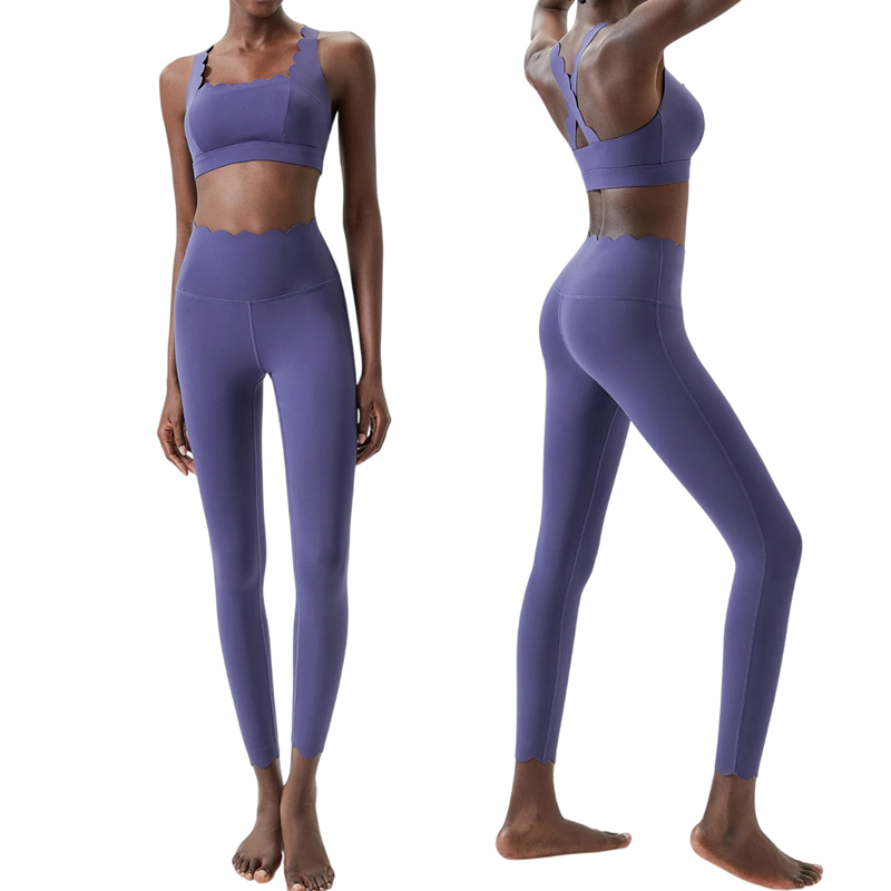 Compleu sportiv pentru femei cu colanți și sutien sportiv din nylon și spandex. Ideal pentru fitness, exerciții sau timp liber, material confortabil, elastic și modern. Descrierea completă