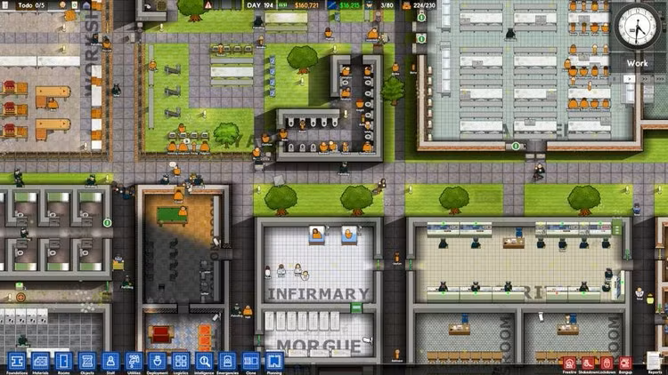 Veți avea nevoie de o cantină, o infirmierie și o cameră pentru gardieni, și nu uitați să vă ascundeți la toaletă, altfel lucrurile se vor complica, dar ce ziceți de un loc de antrenament? Sau de celule de izolare? Sau de camera de execuție?