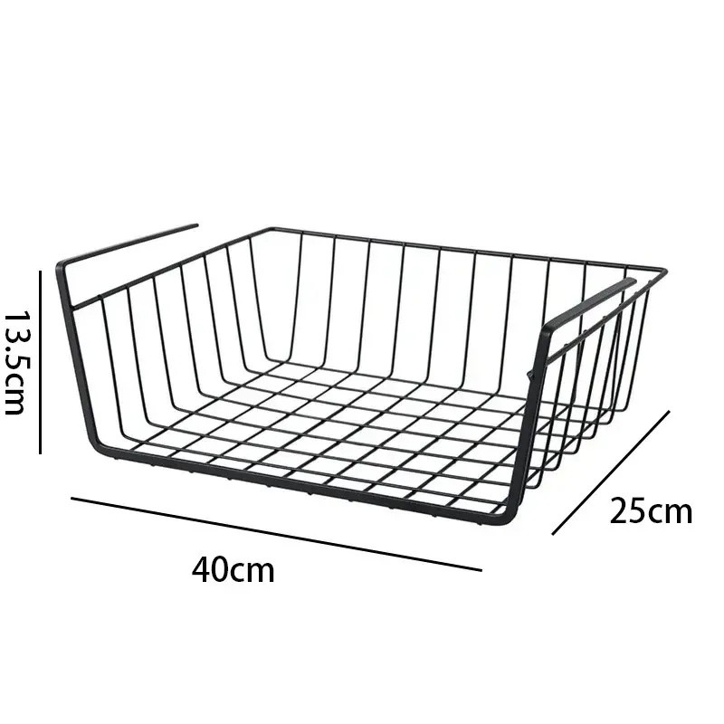 Coș suspendat din sârmă sub poliță 40 x 25 x 13,5 cm Organizator metalic pentru dulapul din bucătărie și birou Suport de depozitare