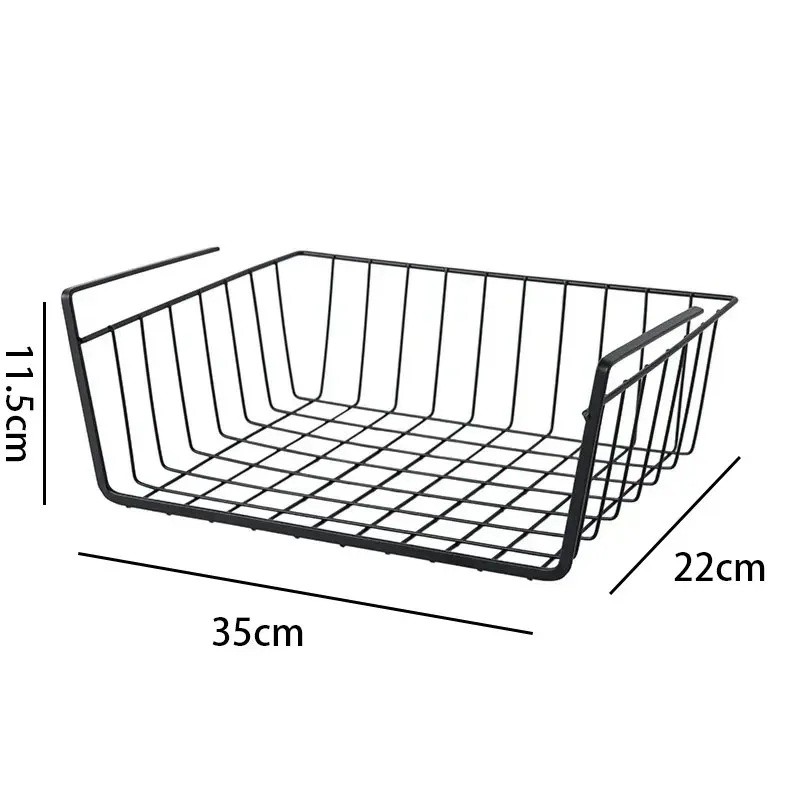 Coș suspendat din sârmă sub raft 35 x 22 x 11,5 cm Organizator metalic pentru dulapul din bucătărie și birou Suport de depozitare