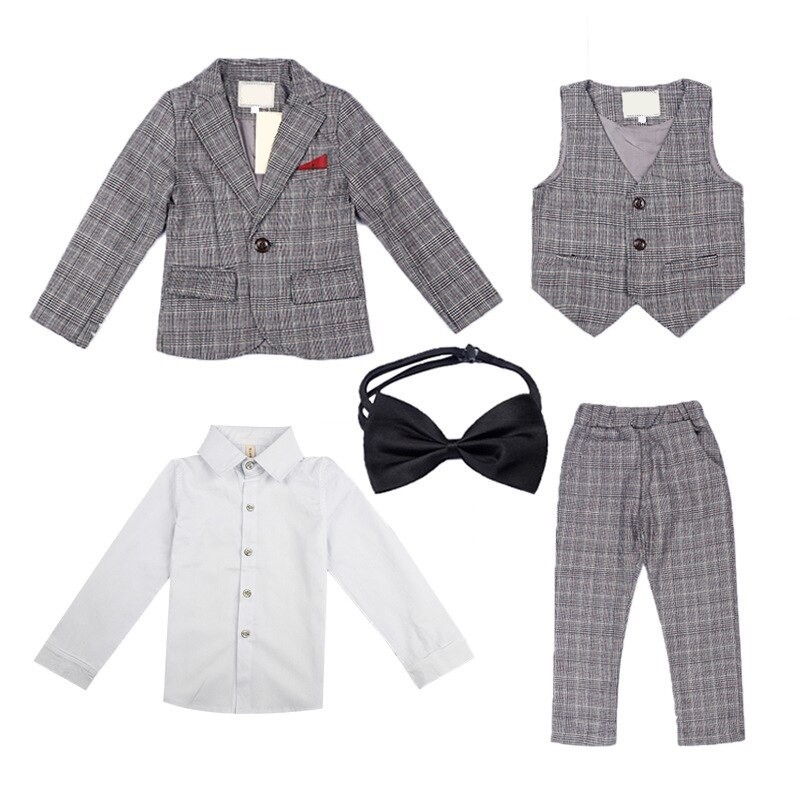 • varianta B: 1x sacou, 1x vestă, 1x cămașă, 1x pantaloni, 1x papion