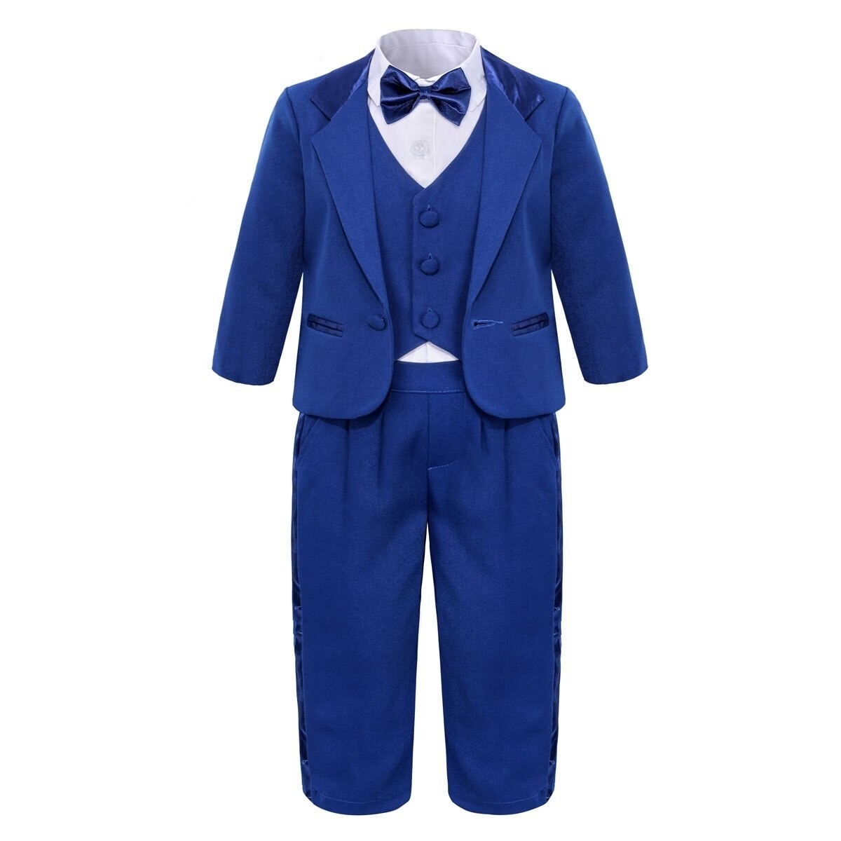 Conținutul pachetului: 1x sacou, 1x vestă, 1x cămașă, 1x pantaloni, 1x papion