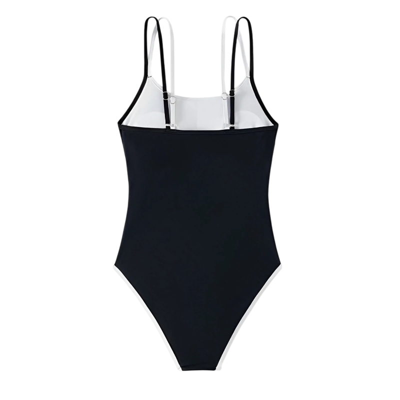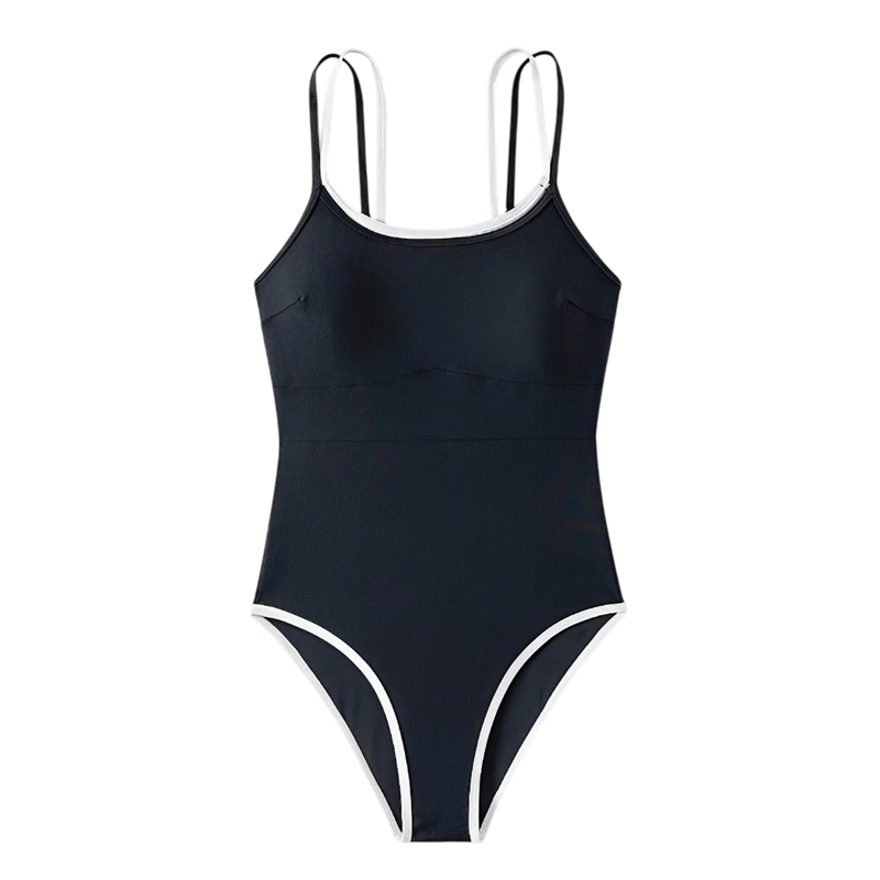 Costume de baie întregi pentru femei cu bretele subțiri, decolteu rotund, negre, din spandex și poliester, elastice, elegante, costume de baie de vară