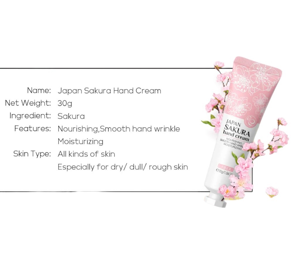 Crema de mâini LAIKOU Sakura 30 g Îngrijire hidratantă regenerantă Împotriva crăpării ridurilor Mâini uscate și solicitate