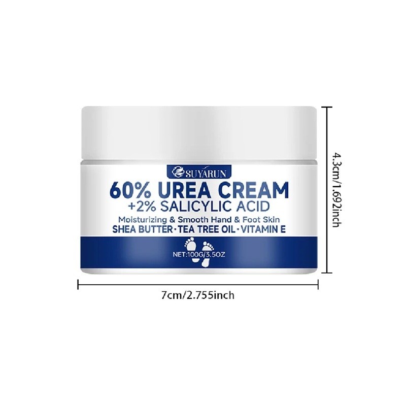 Crema hidratantă pentru picioare și mâini 100 g 60 % uree 2 % acid salicilic 7 x 4,3 cm unt de shea ulei de arbore de ceai Vitamina E
