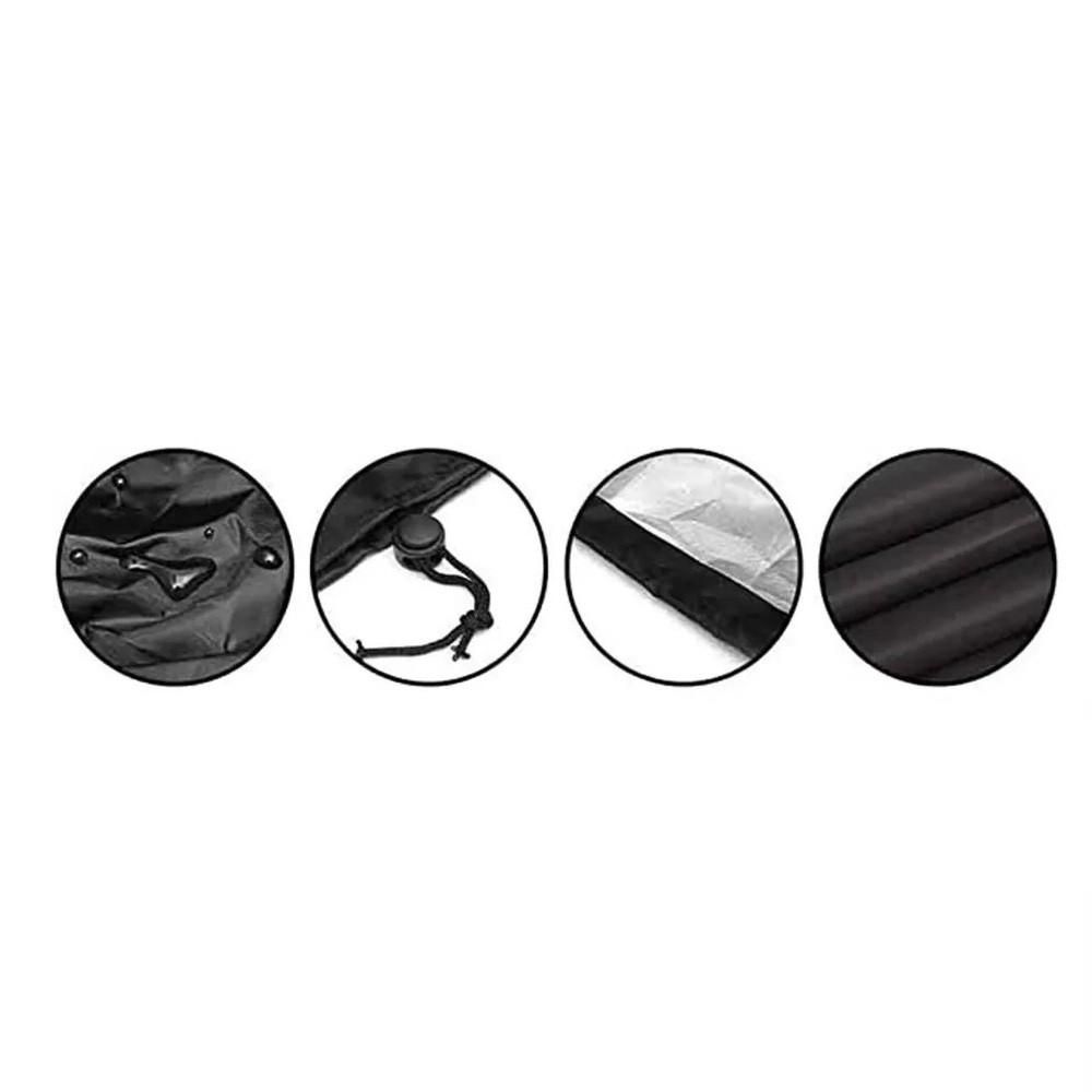 Capacul negru rezistent la apă protejează mobilierul de exterior împotriva ploii, zăpezii, prafului și soarelui. Fixare ușoară datorită șnurului de strângere de la bază. Descrierea completă