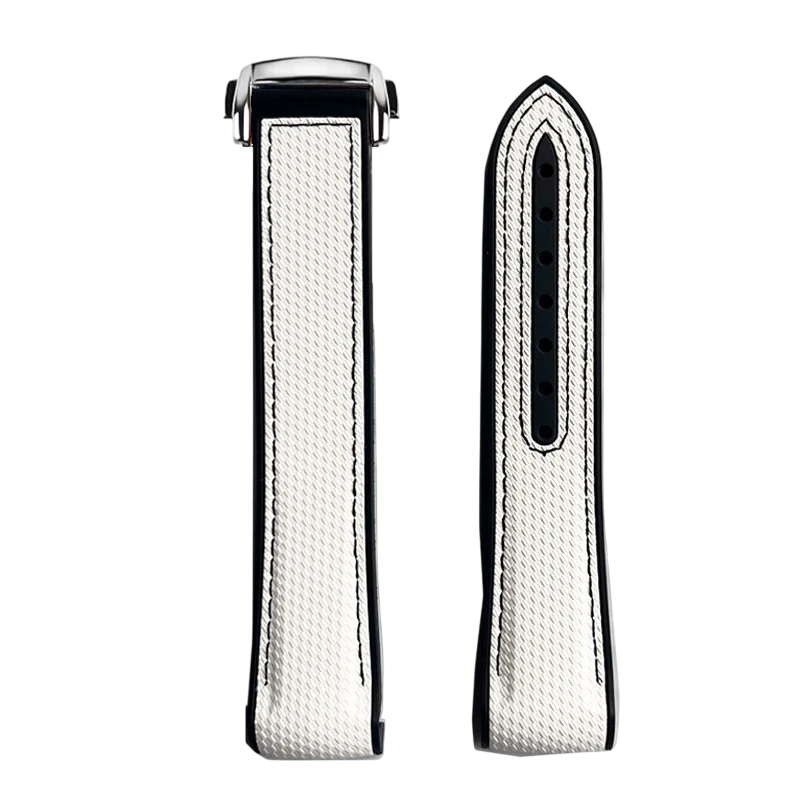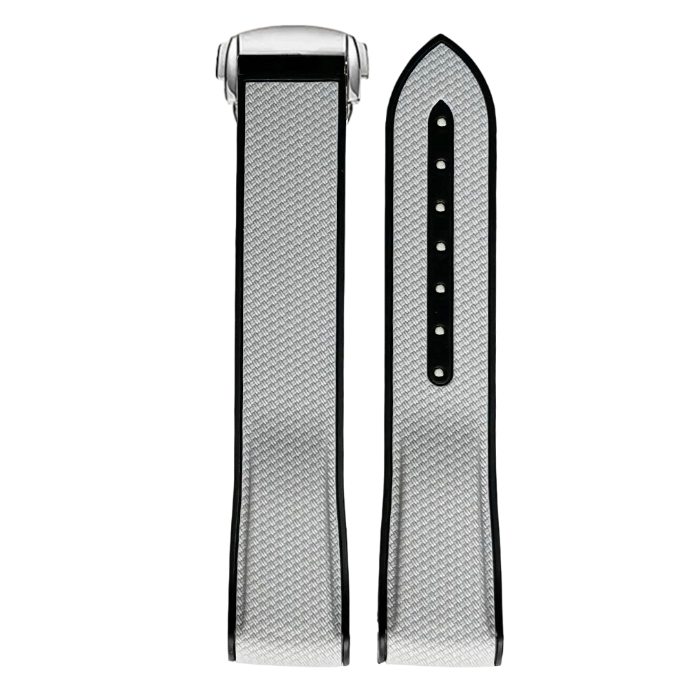 Această curea din cauciuc siliconic cu lățimea de 20 mm este proiectată pentru toți cei care caută un accesoriu ferm, de încredere și elegant pentru ceasurile lor. Datorită formei sportive și materialului plăcut, oferă o purtare confortabilă pe tot parcursul zilei, chiar și în timpul activităților mai solicitante. Curea este potrivită pentru ceasurile Omega X Swatch MoonSwatch și Seamaster 300, ceea ce o face o alegere universală și stilată. Structura sa pliabilă asigură o fixare stabilă, o rezistență ridicată și o durată lungă de viață, chiar și în utilizarea zilnică. Suprafața din silicon este prietenoasă cu pielea și, în același timp, ușor de întreținut.