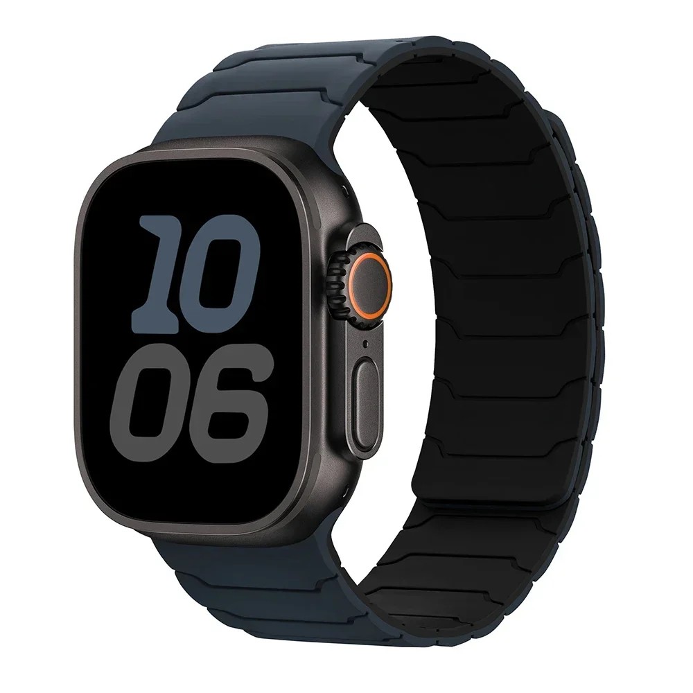 Curea magnetică din silicon destinată pentru Apple Watch în dimensiunile 42 mm, 44 mm, 45 mm, 46 mm și 49 mm reprezintă un accesoriu versatil pentru utilizare zilnică și activități sportive. Siliconul moale și elastic se adaptează perfect la încheietură, este plăcut la atingere și oferă o purtare confortabilă pe parcursul întregii zile. Închiderea magnetică permite o ajustare rapidă și precisă a lungimii, astfel încât cureaua să se mențină întotdeauna fixă, fără a apăsa sau a aluneca. Construcția din silicon este rezistentă la transpirație, apă și uzură zilnică, asigurând o durabilitate lungă chiar și în cazul utilizării frecvente. Cureaua adaugă, de asemenea, ceasurilor un aspect elegant și modern, care se potrivește cu stilul casual, de lucru sau sportiv.