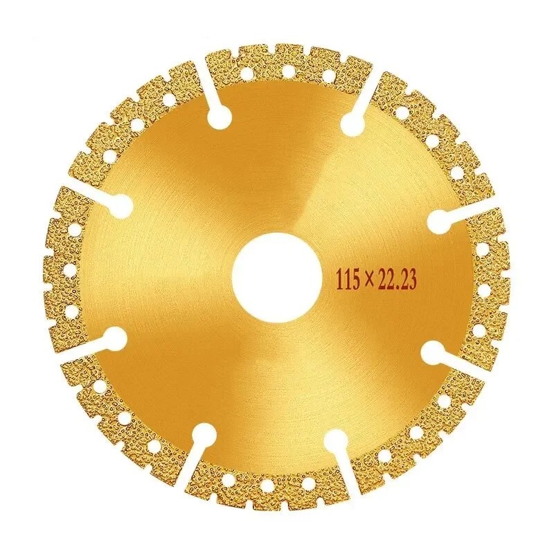 Disc de tăiere diamantat galben vacuumat de 115 mm cu orificiu de 22,23 mm pentru oțel, metal, fontă, aluminiu, beton, piatră, disc de șlefuit universal
