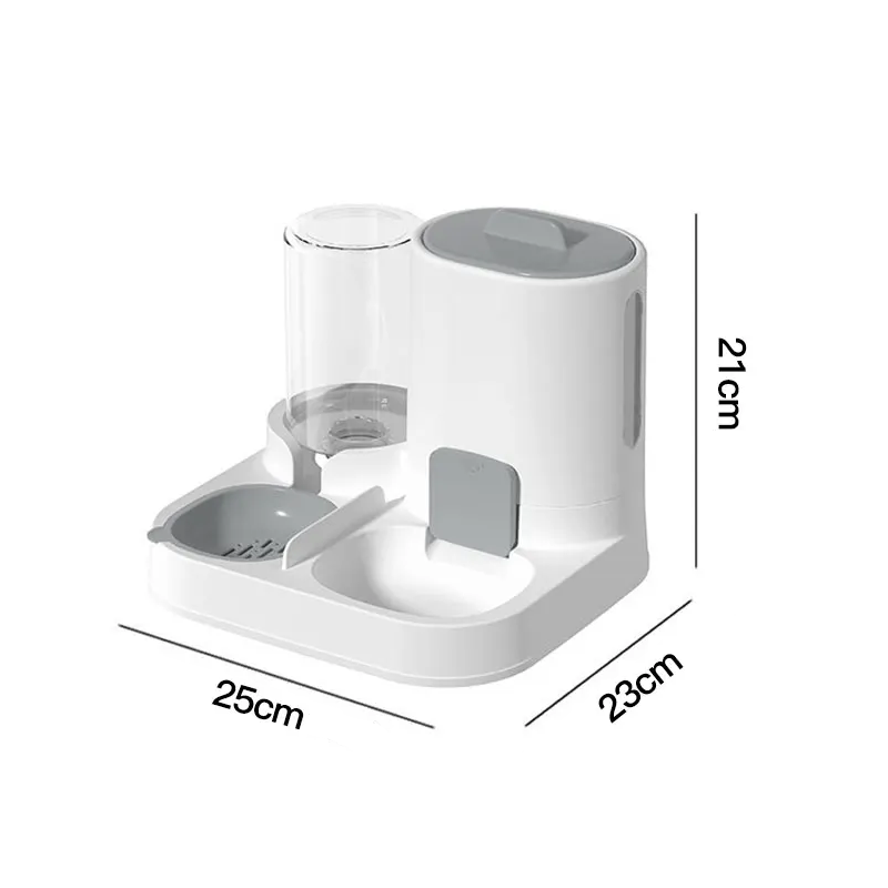 Această dispenser automat de apă și hrană pentru pisici este soluția ideală pentru proprietarii care doresc să asigure un flux constant de apă și hrană proaspătă fără a fi nevoie de completări frecvente. Datorită sistemului gravitațional, apa și granulele se completează automat în boluri conform necesităților, asigurând confort atât pentru dumneavoastră, cât și pentru animalul dumneavoastră. Designul modern și dimensiunile compacte 25 x 23 x 21 cm permit o amplasare ușoară în orice gospodărie. Dispenserul este echipat cu un cartuș filtrant care elimină părul și impuritățile din apă, promovând sănătatea animalului dumneavoastră.