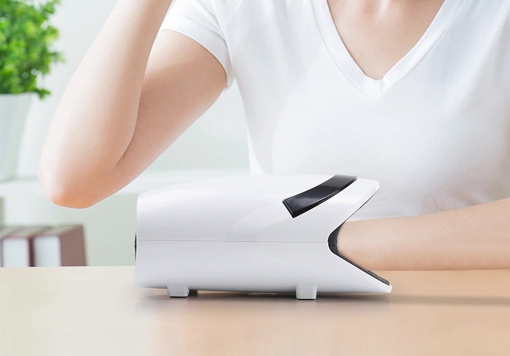 Dispozitiv inteligent de masaj pentru mâini cu compresie caldă, vibrații și 3 moduri de masaj. Oferă un control confortabil și un design modern cu conexiune USB-C. Descrierea completă