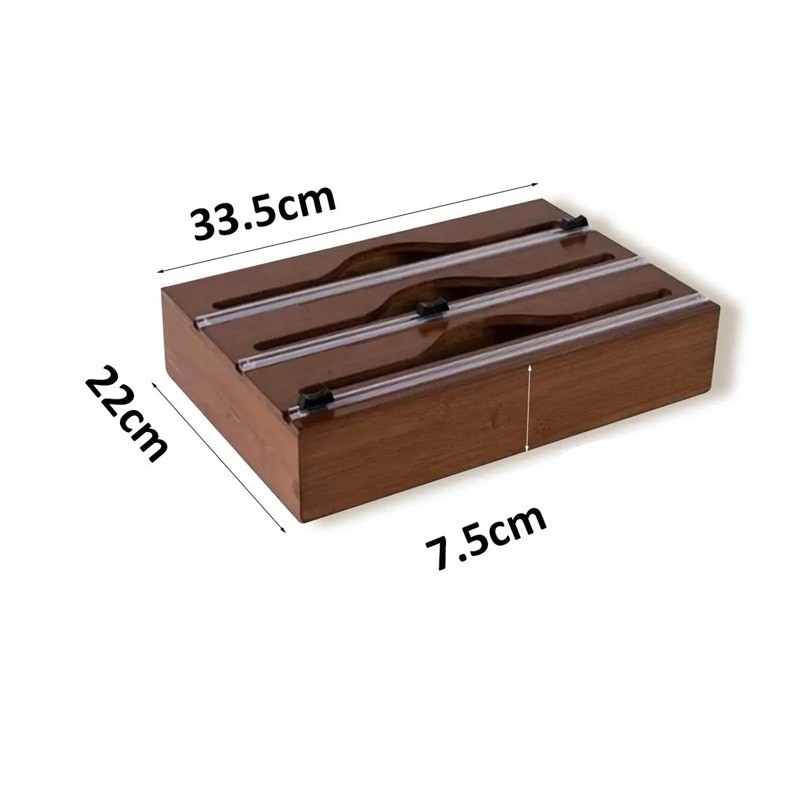 Fiecare bucătărie merită un echipament funcțional și estetic, care să faciliteze activitățile zilnice. Acest distribuitor de folie de bucătărie cu cutie din bambus în lemn elegant închis este conceput pentru a oferi maximă practicitate în ambalarea alimentelor și organizarea gospodăriei. Datorită posibilității de a introduce până la trei role de folie alimentară simultan, aveți întotdeauna materialul necesar la îndemână. Tăietorul integrat permite tăierea rapidă, precisă și curată a foliei sau pungilor, astfel încât lucrul cu acestea să fie confortabil și eficient.