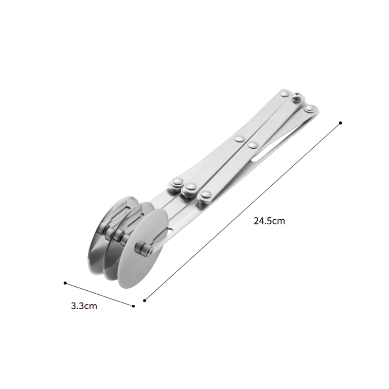 Datorită construcției ajustabile, lățimea dintre roți poate fi modificată după necesitate, astfel încât să creați fâșii exact atât de late cât cere situația. Designul metalic oferă instrumentului stabilitate și durabilitate. Suprafața netedă permite o curățare ușoară, ceea ce îl face un ajutor practic și igienic în pregătirea produselor de patiserie. Cu un instrument cu o greutate de 232 g, se lucrează confortabil, se manevrează ușor și nu obosește mâna nici în timpul lucrului prelungit.