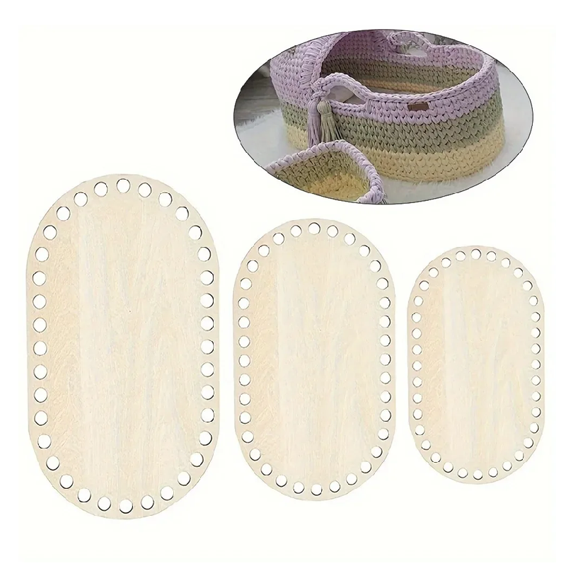 Dno oval de lemn pentru croșetat coșuri 3 buc Rânde dimensiuni 30x20 25x15 15x10 cm Grosime 2 mm Găuri 6 mm Fabricat manual