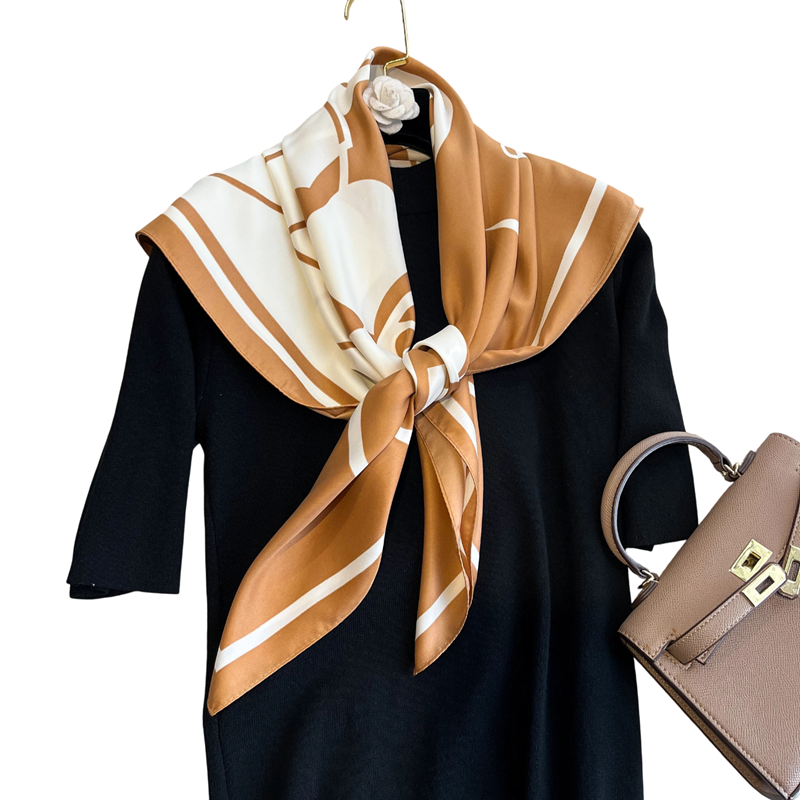 Această eșarfă pătrată pentru femei cu dimensiunile 90 x 90 cm este un accesoriu de modă elegant, care datorită modelului său delicat floral adaugă feminitate și ușurință fiecărui outfit. Materialul din poliester ușor oferă o purtare plăcută, o atingere fină și o așezare moale în jurul gâtului sau umerilor. Datorită formei pătrate, permite diverse moduri de legare sau stilizare, fie ca eșarfă, accesoriu de modă pentru păr sau decor pentru geantă. Motivul floral are un aspect discret, dar elegant, ceea ce face din acest model o alegere ideală pentru zilele obișnuite și ocazii sociale. Eșarfa este ușoară, aerisită și se combină ușor cu diferite stiluri de îmbrăcăminte.