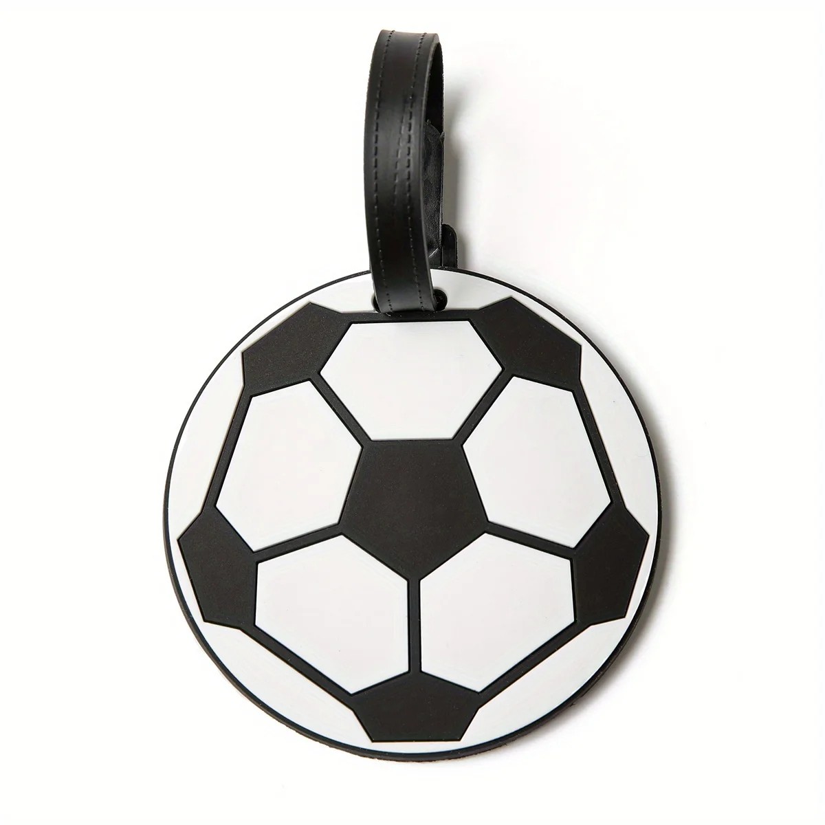 Etichetă pentru bagaje în formă de minge de fotbal 10,5 × 10,5 cm etichetă de identificare din silicat gel neagră și albă pentru valiză sau geantă