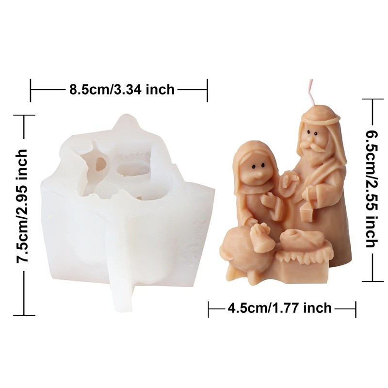 Formă din silicon 7,5 x 8,5 cm Sfânta Familie Betleem Formă pentru turnarea ceară, rășină, ghips, săpun și fabricarea lumânărilor de Crăciun