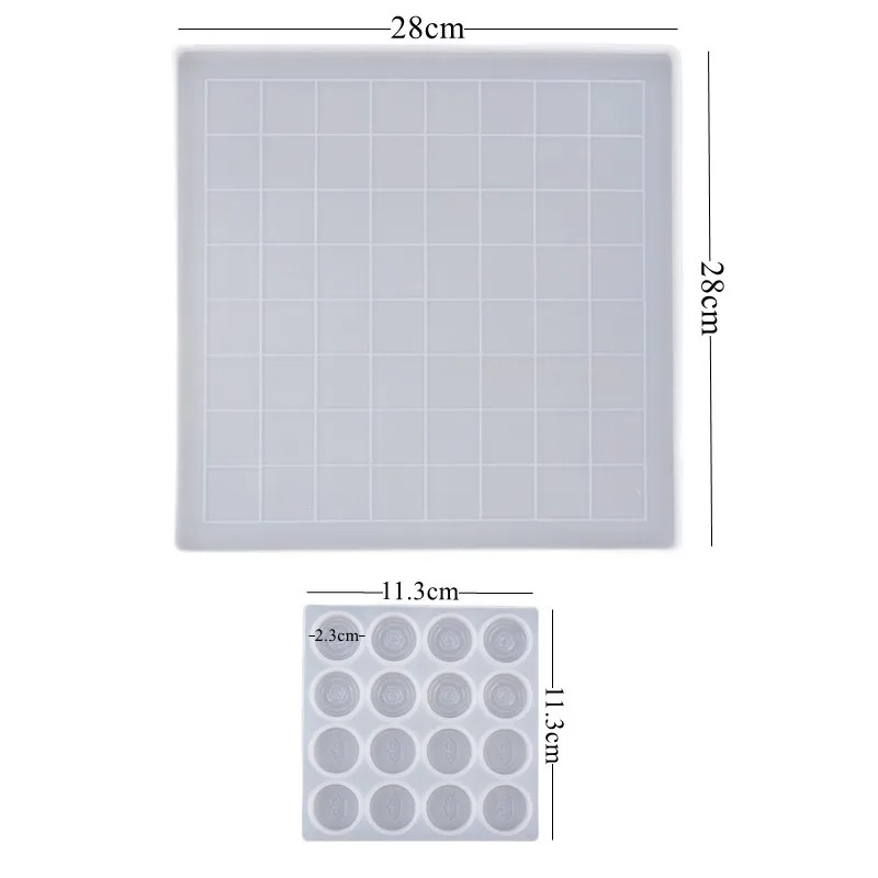Formă din silicon pentru fabricarea unei table de șah 28 x 28 cm și forme pentru figurine de șah