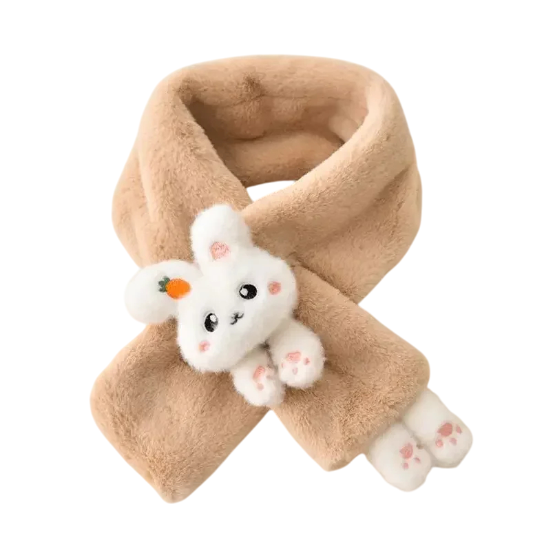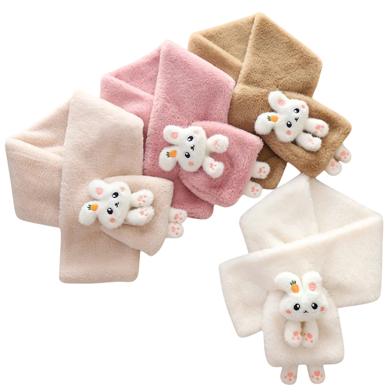 Fular pentru copii 60–80 cm cu iepuraș 3D drăgălaș și lăbuțe Accesoriu moale și călduros din poliester Fular de iarnă confortabil pentru băieți și fete cu un motiv vesel de animal