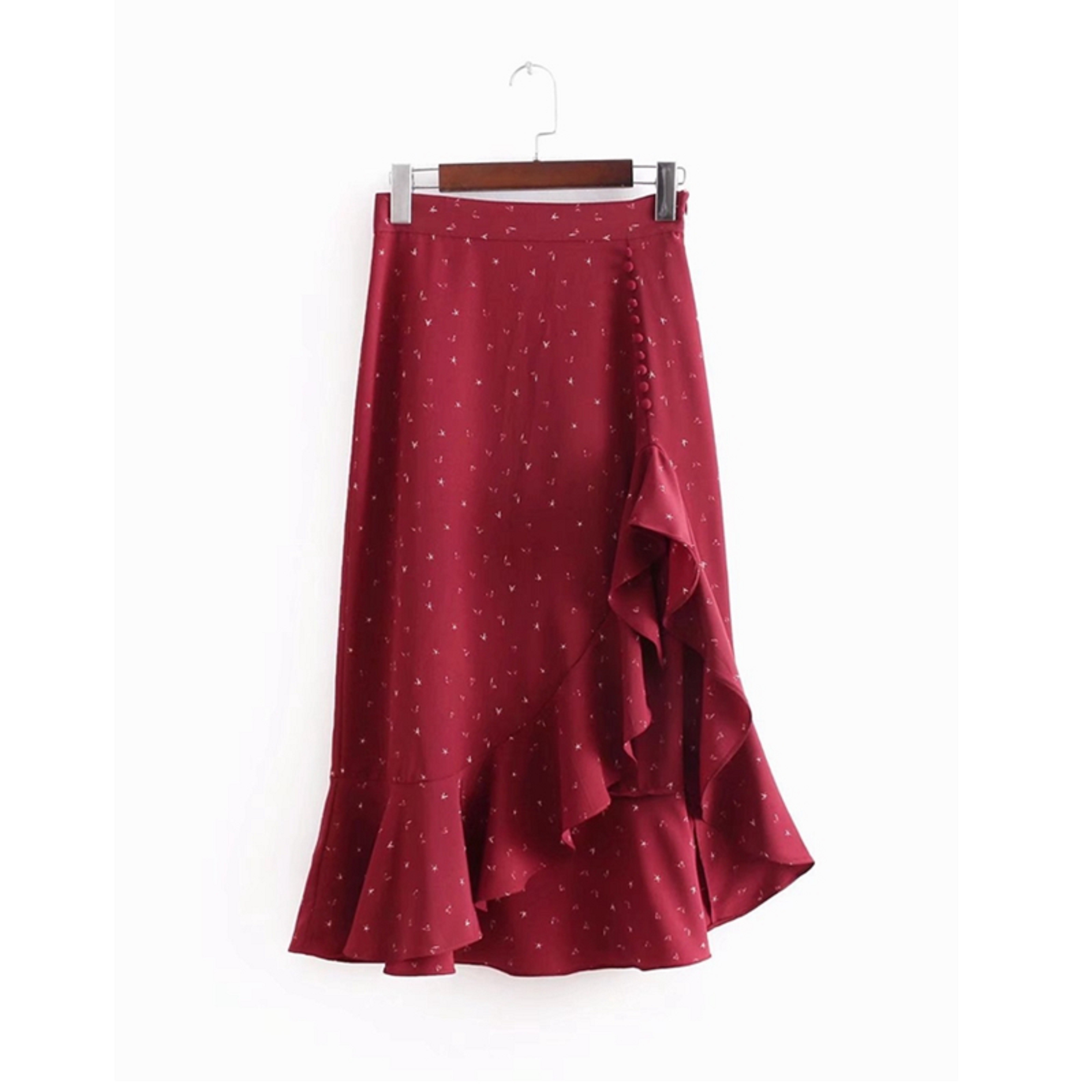 Pagina de start Pagina de start Îmbrăcăminte şi accesorii Femei Fuste femei Fuste midi femei Fustă de damă cu talie înaltă și volan G29