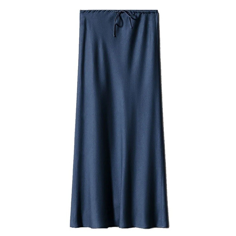 Fustă lungă din satin pentru femei, elegantă, strălucitoare, cu talie dreaptă, netedă, formală, pentru seara, bal, petrecere de nuntă