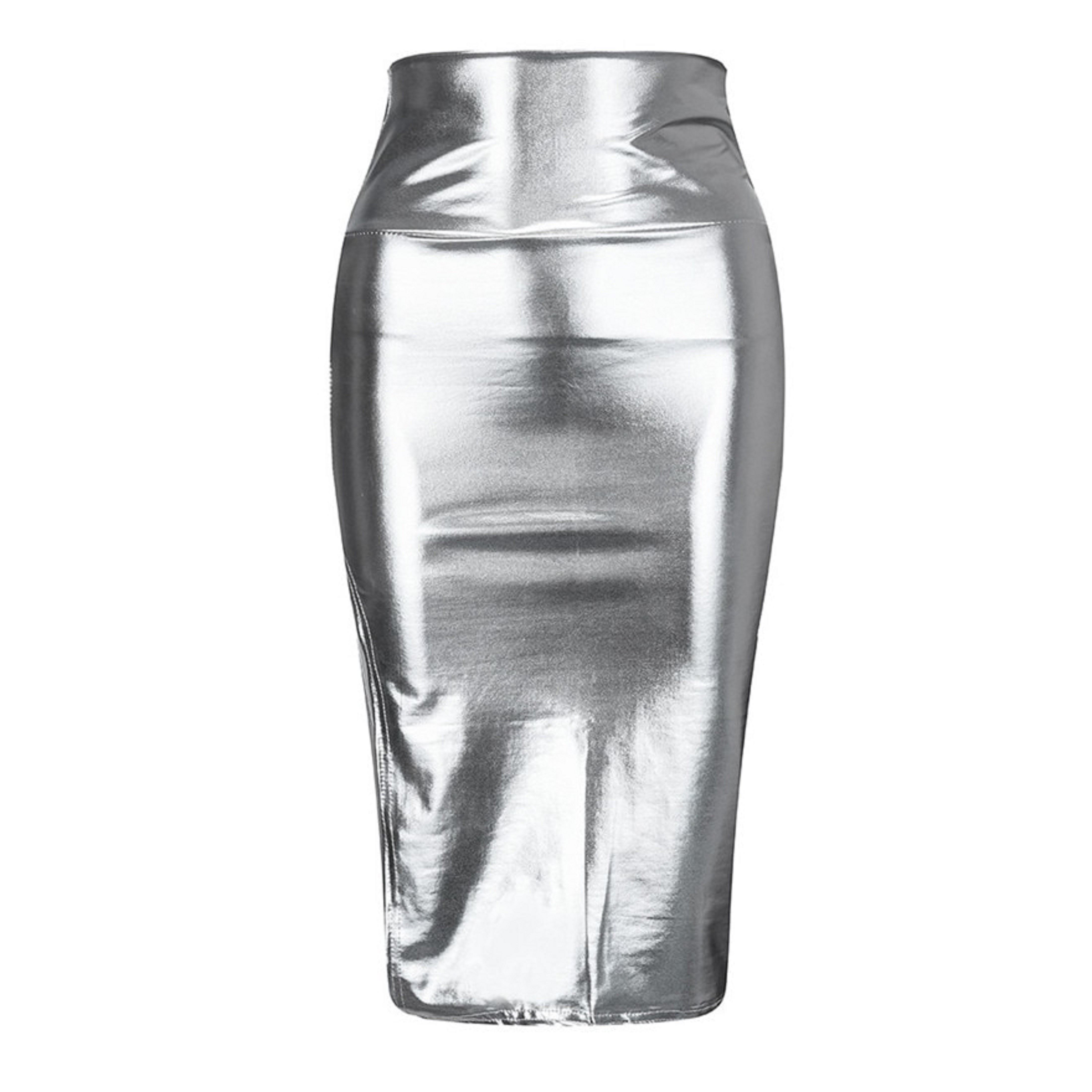 Fustă strălucitoare pentru femei, cu talie înaltă și fantă