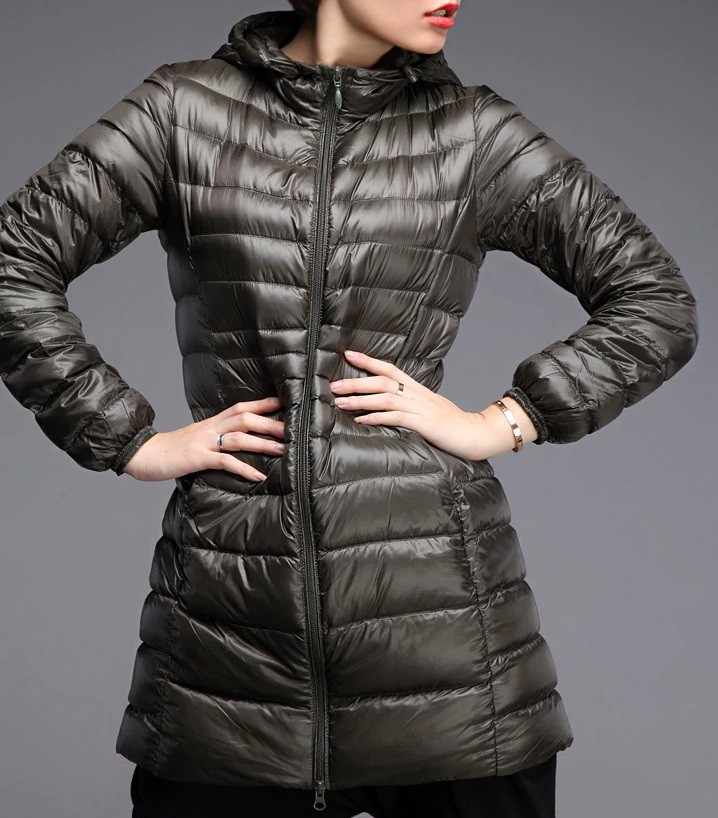 În această geacă lungă cu puf de rață, vă va fi cu siguranță cald.