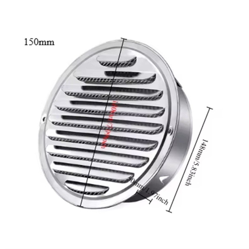 Grilajă de ventilație rotundă 150 mm 148x180x50 mm Oțel inoxidabil 201 Grilaj de protecție împotriva insectelor Ventilație exterioară și interioară Evacuare a aerului
