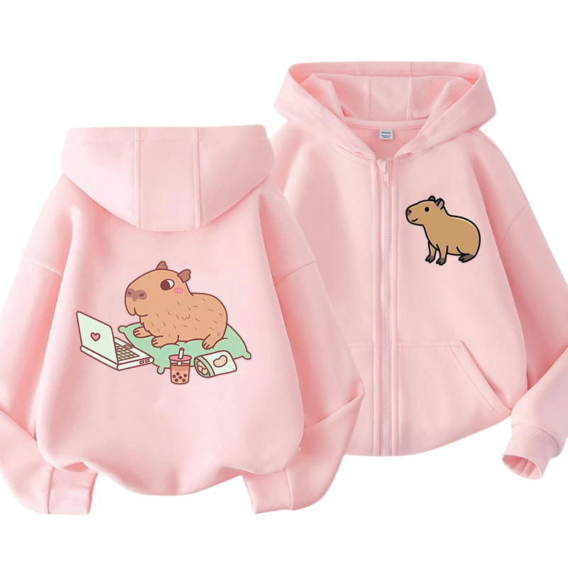 • Conținutul pachetului: 1 × hanorac pentru copii cu glugă și fermoar cu motiv de capibara