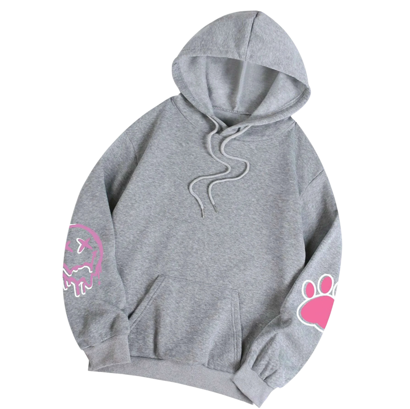 Hanorac elegant pentru femei din poliester moale, cu glugă, buzunare și motiv de iepure pe spate. O piesă confortabilă și modernă pentru purtarea zilnică. Descrierea completă
