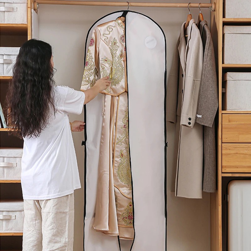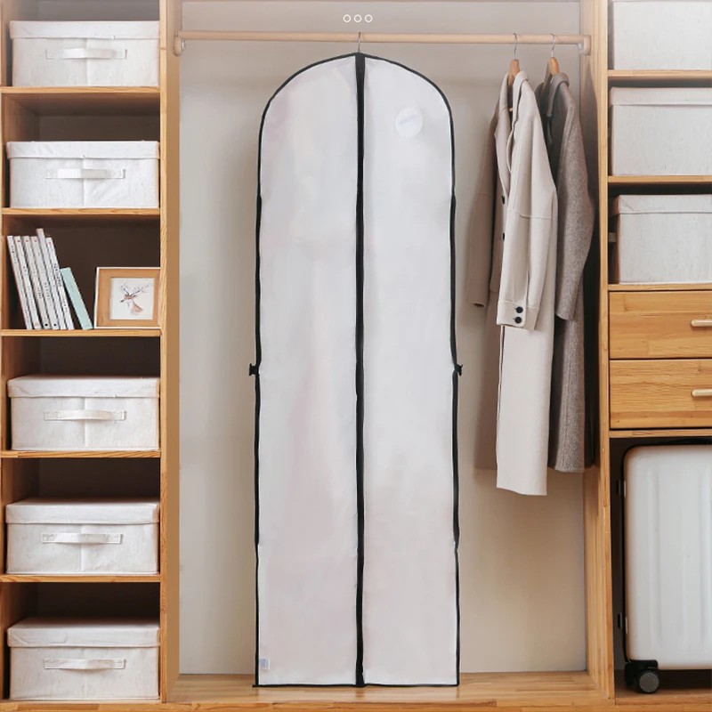 - Dimensiunile husei 180 cm × 60 cm sunt potrivite pentru rochii lungi, paltoane și îmbrăcăminte.