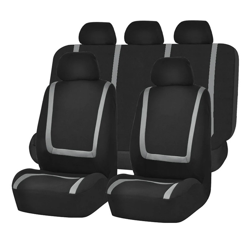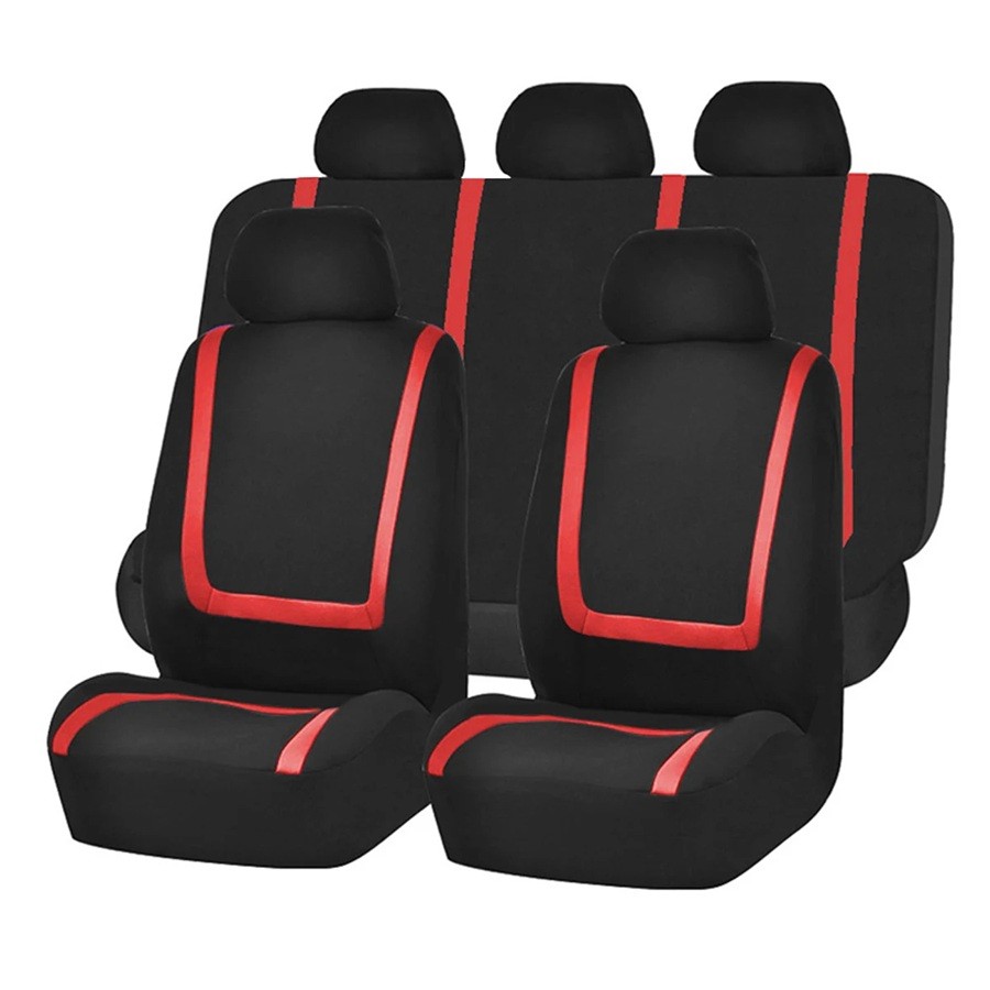 Huse universale pentru scaune auto din țesătură din poliester cu dungi. Set 9 buc – 2 buc pentru scaunele din față, 1 buc pentru scaunul din spate, 5 buc suporturi pentru cap. Descrierea completă