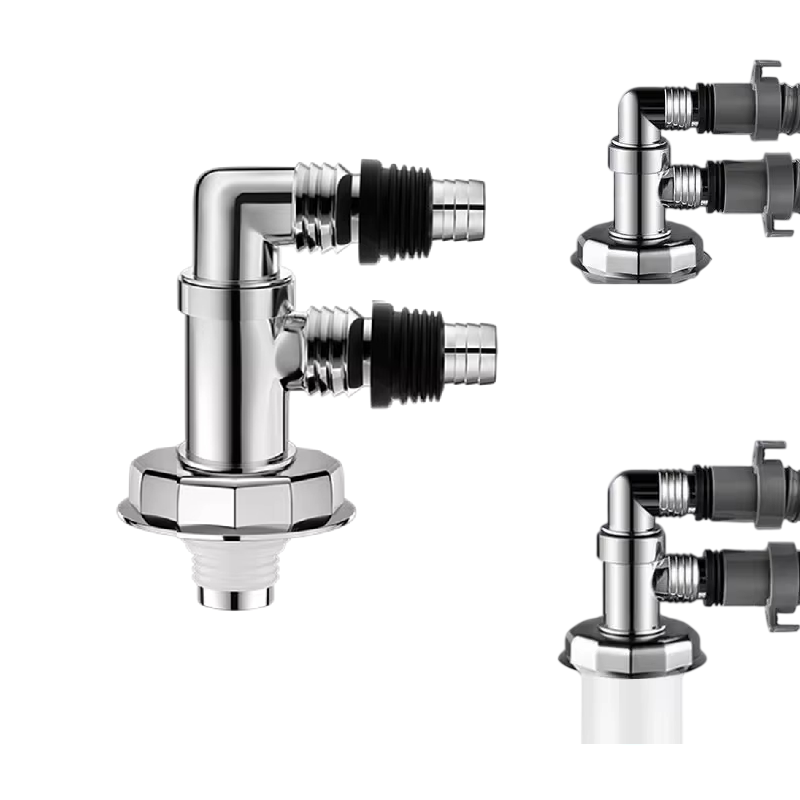 Această îmbinare T dublă rotativă pentru scurgerea podelei mașinii de spălat este proiectată pentru a asigura o conexiune sigură și fiabilă a furtunurilor de evacuare de la mașina de spălat, mașina de spălat vase sau tocătorul de resturi direct în scurgerea podelei. Datorită suprafeței cromate, îmbinarea este rezistentă la coroziune și uzură mecanică, asigurând o durată lungă de viață și un aspect modern. Mecanismul rotativ permite o amplasare flexibilă a furtunurilor și susține spălarea prin gravitație, astfel încât apa uzată este evacuată eficient în sistemul de canalizare fără reflux.