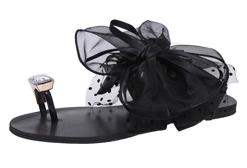 Poartă aceste flip-flops confortabile cu o fundă mare din dantelă.