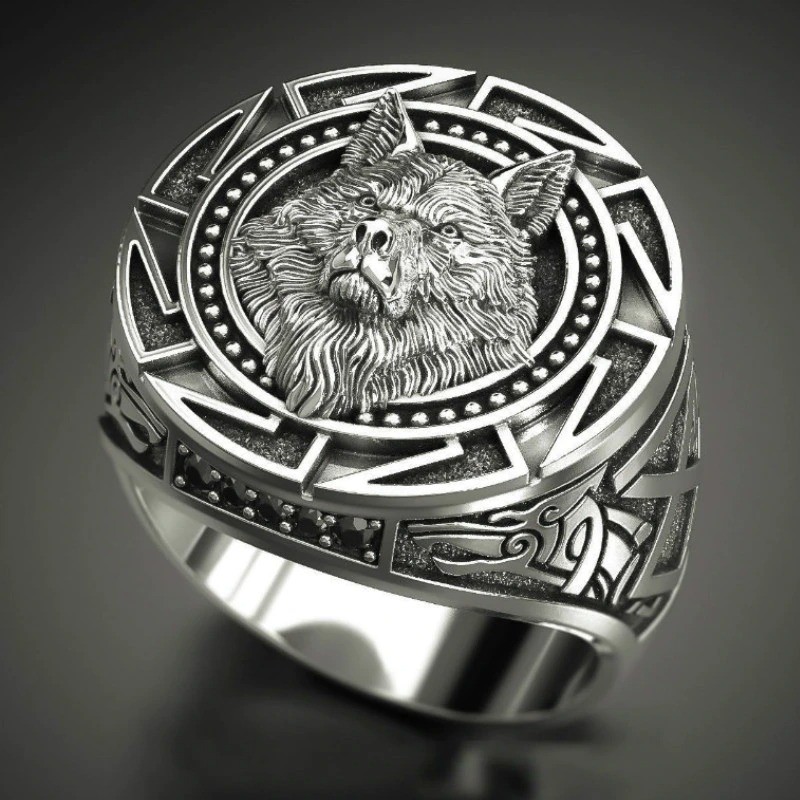 Inel pentru bărbați cu un lup
