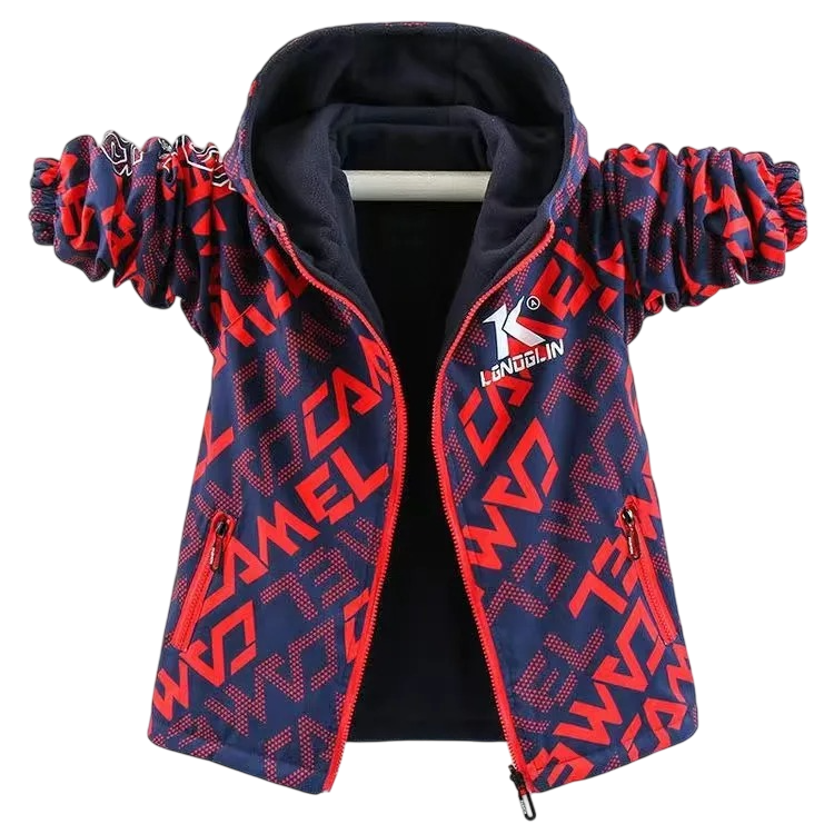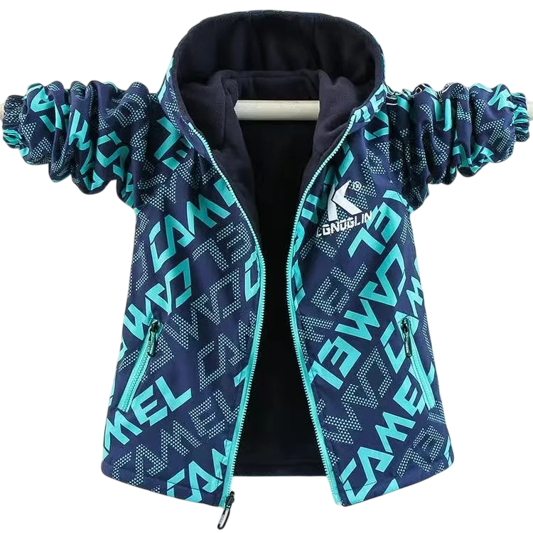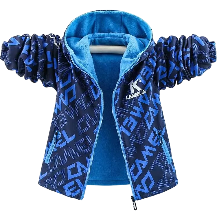 Jachetă călduroasă de iarnă pentru băieți cu glugă, fermoare rezistente și buzunare sigure. Plăcută la purtare, potrivită pentru zilele reci și utilizarea zilnică. Descrierea completă