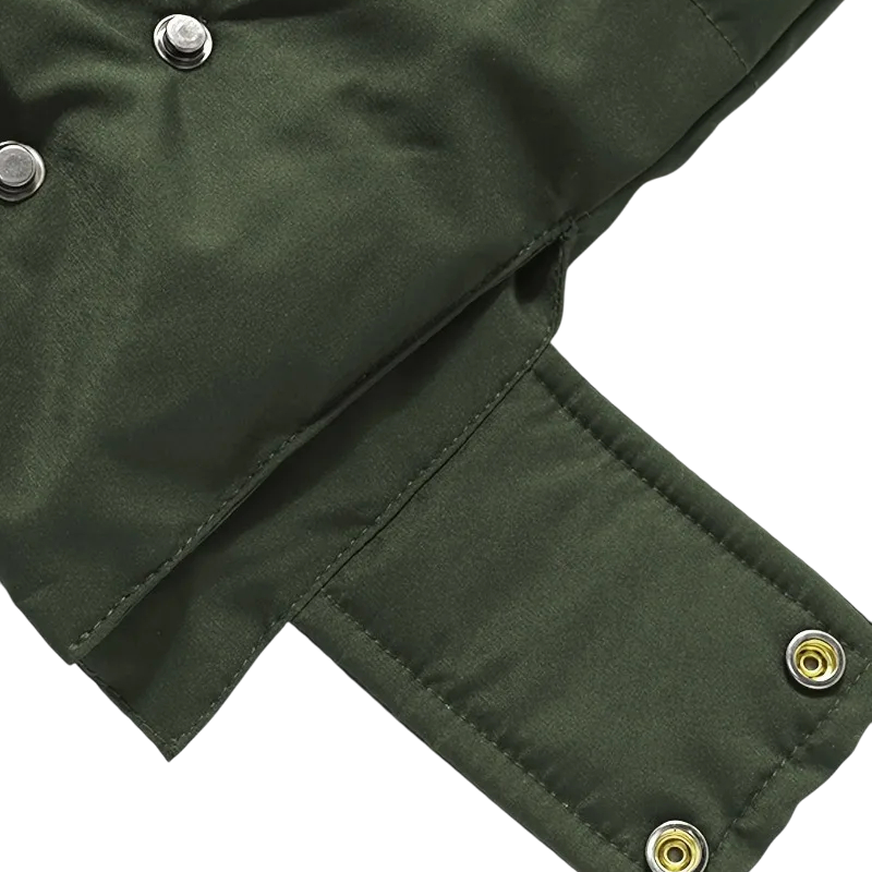 Închiderea cu fermoar și nasturi permite o fixare fermă și sigură a jachetei, prevenind pătrunderea frigului și având în același timp un aspect stilat.
