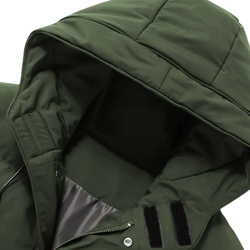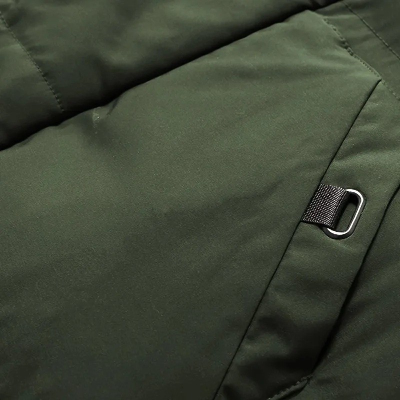Această jachetă de iarnă pentru bărbați este concepută pentru cei care caută o protecție fiabilă împotriva frigului, vremii nefavorabile și doresc să păstreze în același timp un aspect modern și curat. Este fabricată din poliester rezistent și impermeabil la vânt, care oferă durabilitate pe termen lung și protecție împotriva vântului rece și a ploii ușoare. Captuseala interioară din bumbac asigură căldură plăcută, atingere moale și confort pe parcursul întregii zile.