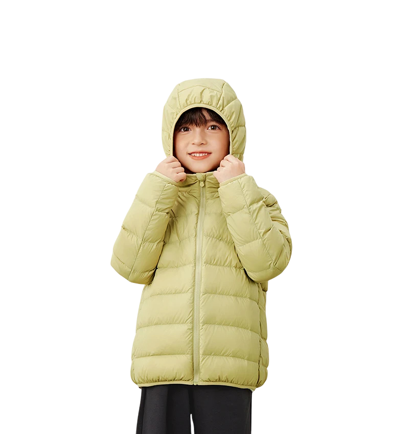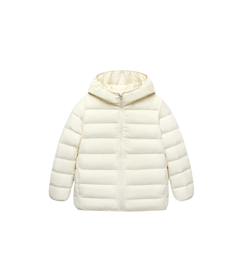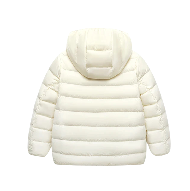 Jachetă de iarnă ușoară și călduroasă pentru copii din nylon rezistent, cu glugă, buzunare și închidere cu fermoar. Practică pentru purtarea zilnică în vreme rece. Descrierea completă