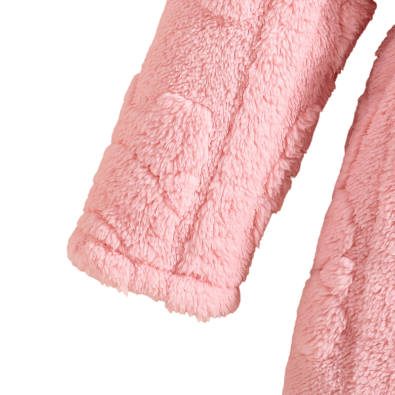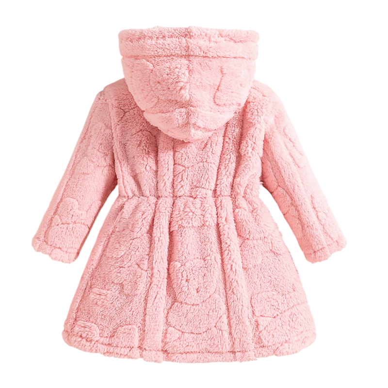 Jachetă de iarnă pentru fete cu fermoar și glugă, blană moale cu motiv de ursuleți, jachetă călduroasă din poliester pentru iarnă, îmbrăcăminte drăguță și călduroasă pentru copii