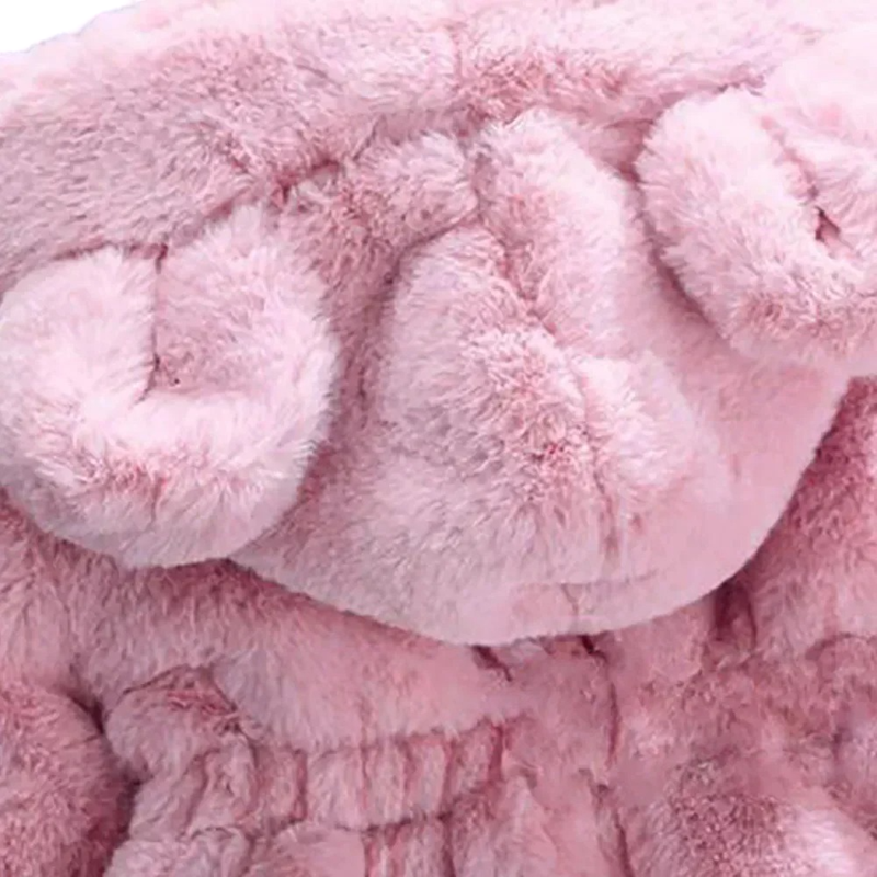 Jachetă de iarnă călduroasă pentru fete cu blană moale, glugă cu urechi și buzunare. Design confortabil și călduros, ideal pentru purtarea zilnică în timpul iernii. Descrierea completă