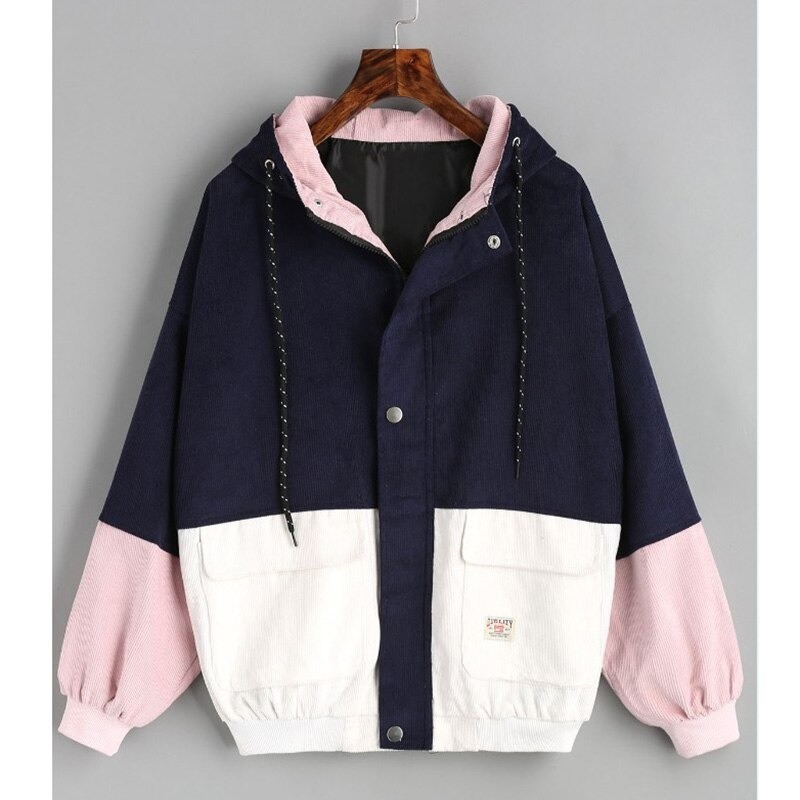 Jachetă de tranziție colorată pentru femei, cu glugă