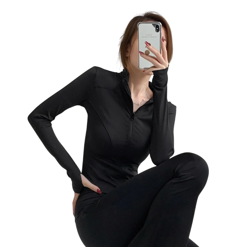 Jachetă sportivă pentru femei cu fermoar Croi ajustat Deschideri pentru degete Material rapid uscare Confortabil Îmbrăcăminte fitness Antrenament