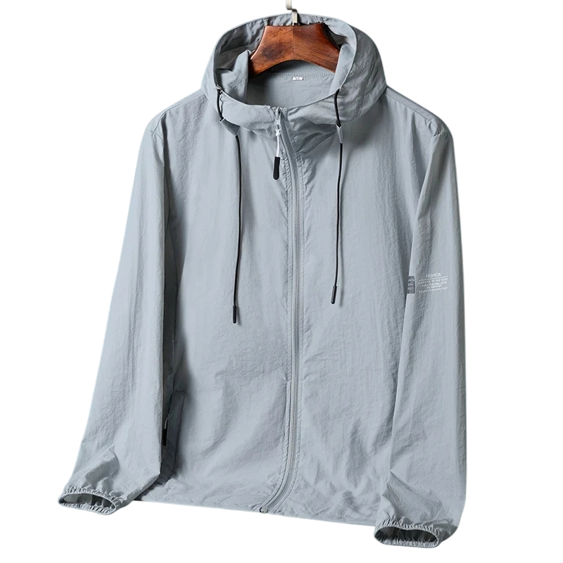 Jachetă unisex ușoară, cu fermoar, glugă și șnur de strângere, jachetă respirabilă de tranziție, pliabilă pentru călătorii și sport