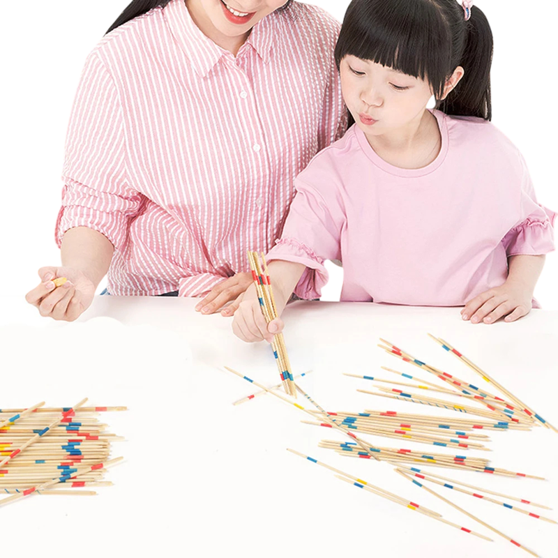 Joc clasic din lemn Mikado 31 bucăți cu cutie Joc distractiv de familie pentru copii și adulți