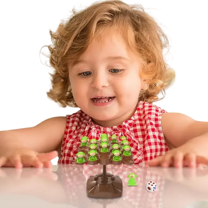 Joc de masă interactiv distractiv pentru familii. Jocul maimuțelor echilibrate pe copac cu zar, maimuțe și suport de bază. Ideal pentru orice ocazie Descrierea completă